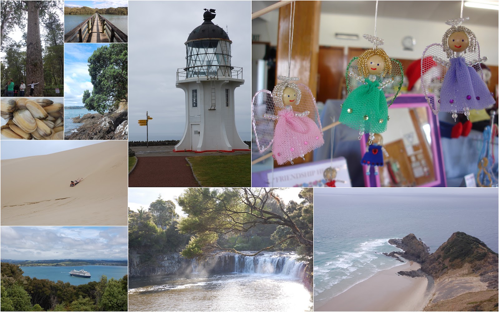 第一站來到觀光小鎮Paihia,沙灘上有兩位毛利女孩好奇地直盯著我看,感覺這裏像安靜點的小型墾丁,也有很多銀髮遊客,鎮上圖書館有免費網路及街上不少藝品店,裡面很多創意設計小品;另外戰爭紀念堂裡面雖然場地不大,但正在展出的手工藝品特賣會可以發現不少巧思與創意,而且創作者都是年紀大的爺爺奶奶們,每樣作品都是那麼可愛,要不是因為接下來的旅途還很長,不想再增加討厭的行李重量,早就下手了,我還蠻喜歡這個安靜小鎮的。