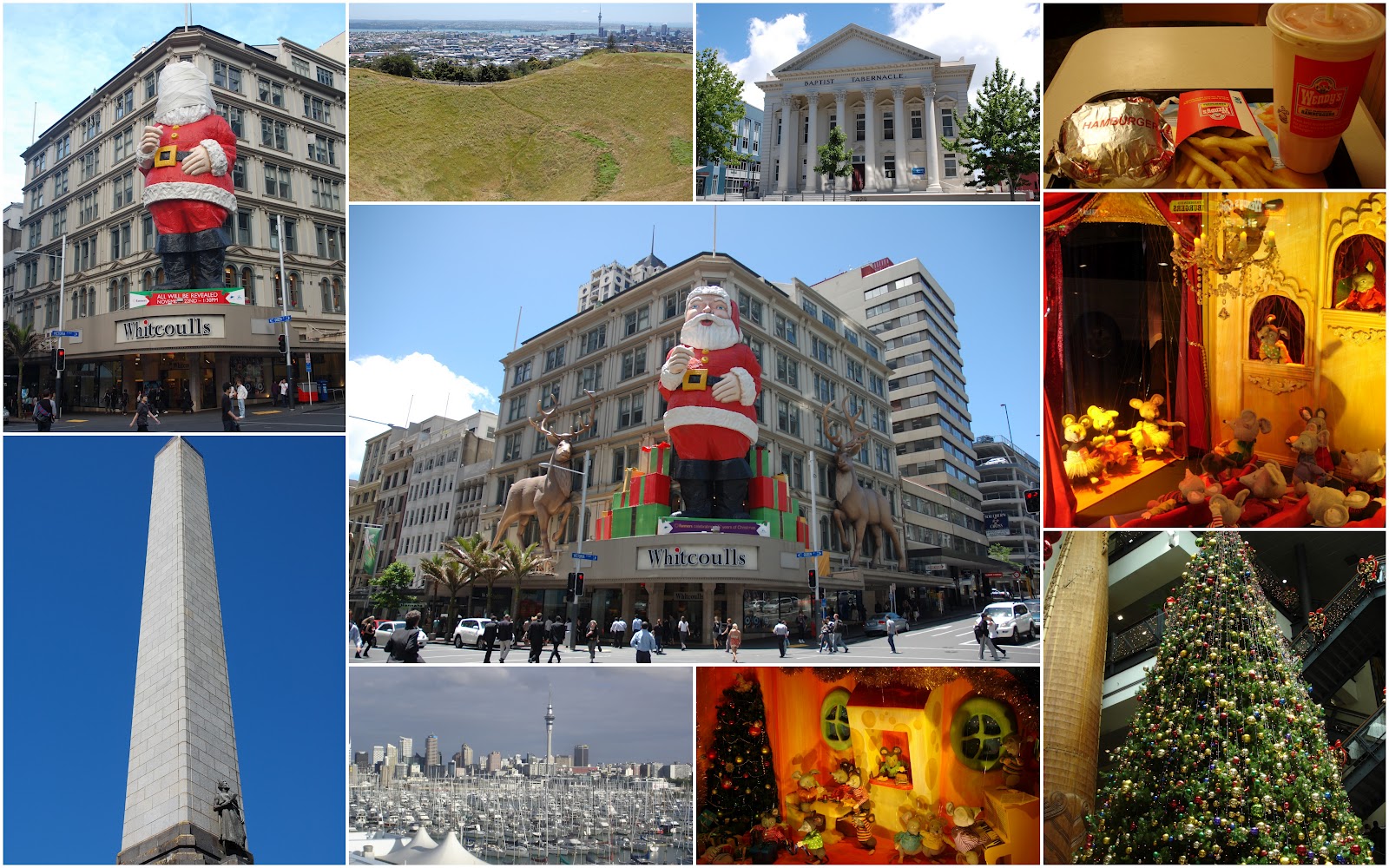 第二份季節工的紅蘿蔔與馬鈴薯包裝主要是跟著採收季從二月到十月,所以當十一月季節結束後,我又開始踏上旅程,打算先從紐西蘭北島最北邊開始遊覽,這時又經過了大城奧克蘭,雖然距聖誕節還有一個多月,但大大小小的相關活動已經開始籌辦,到處都可以嗅到耶誕氣息,聖誕樹無所不在,市中心還豎起了一座大型耶誕老公公像,在聖誕節之前臉上纏著紗布,等到當天再掀開。