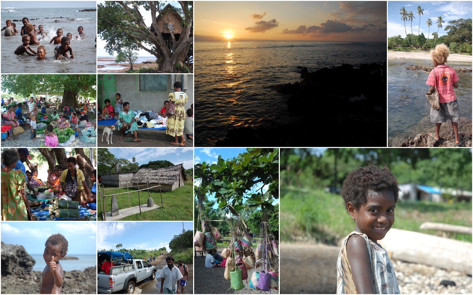 後來玩累了,我走到樹旁全是卵石的海灘,從這裡可以遠眺另一個島嶼的火山。有位媽媽正和孩子用手抓樹葉包的便當吃。最後我們在這個步調緩慢且原始的地方苦等了四個小時後,才終於搭機返回Port Vila,從飛機上的窗口還看到鄰近Albury島正在冒煙的大火山口,非常壯觀。