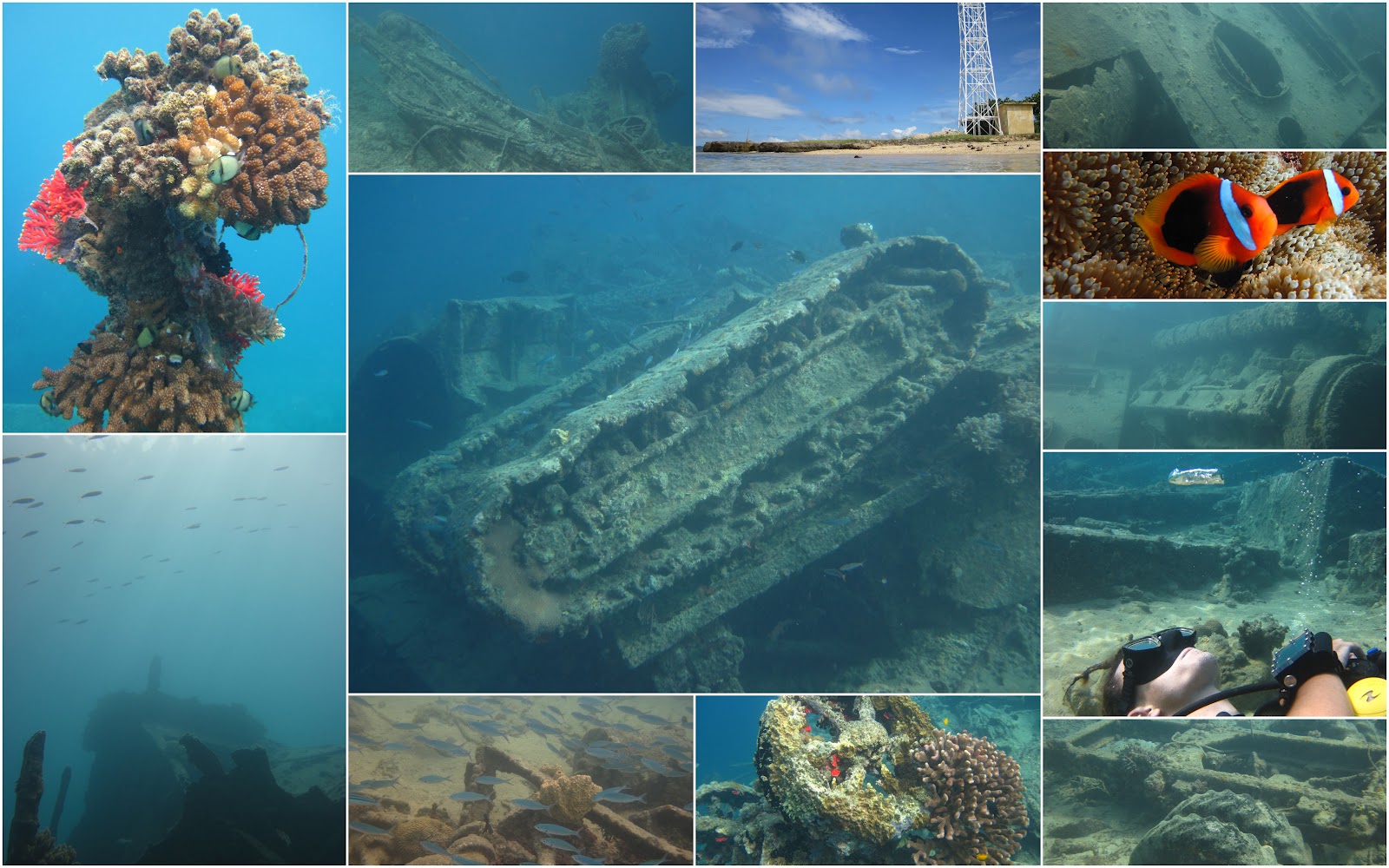 下水後慢慢的就看到一些鋼筋裸露,漸漸的開始出現較大型的輪子、沉船、吉普車,甚至還有雪曼坦克,真是酷斃了,以往只能透過螢幕看的二次大戰武器,現在就保存好好的在我眼前,趨前摸了摸幾下,感受當年激烈的戰爭,如今它們只能靜靜地躺在海底,成了美麗魚群與珊瑚的家。